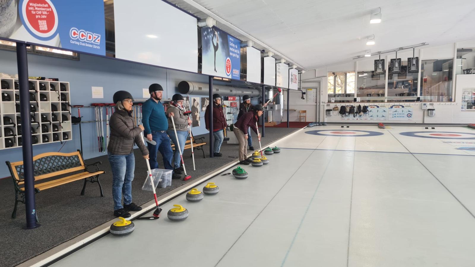 Neun Bündner Landeier wagten sich an einem sonnigen Samstagmorgen früh in die Grossstadt. Mit einem Foxtrail erkundigten wir den grossen Hauptbahnhof. Nachdem uns der Präsidenten fast davongelaufen wäre, erholten wir alle uns wieder bei einem Kaffee. Die Fahrt mit der Doldenbahn zeigte uns ein uns unbekanntes Zürich. Eine erfahrene Curlingleiterin des Curling Clubs Doldern Zürich erklärte uns die Grundbegriffe ihres Sportes. Im 6. End landeten unsere Steine in der Nähe des Hauses und blieben im Spiel. Auf dem Spaziergang durch den Wald und die Rebberge wärmten wir uns wieder auf. Die Suche in der Grossstadt nach einem offenen Restaurant, in dem wir einen Apéro geniessen konnten, dauerte erstaunlich lange. Den Tag rundeten wir mit einem feinen Essen in der «Blinden Kuh» ab und führen im Dunkeln nach Hause.